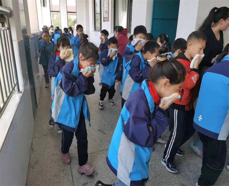上午8:25,随着紧急的警报声响起,疏散逃生演练活动拉开序幕。 按照预案,全体教职工各就各位,班主任迅速组织学生捂住鼻子、弯腰沿楼道左右两边,有序地从各教室安全地带迅速撤离,另一名教师紧跟教室最后一名学生, 护送他们出安全到达操场集合地;清点人数,确保每位学生的安全,并 及时进行汇报,整个过程迅速、规范、有序。