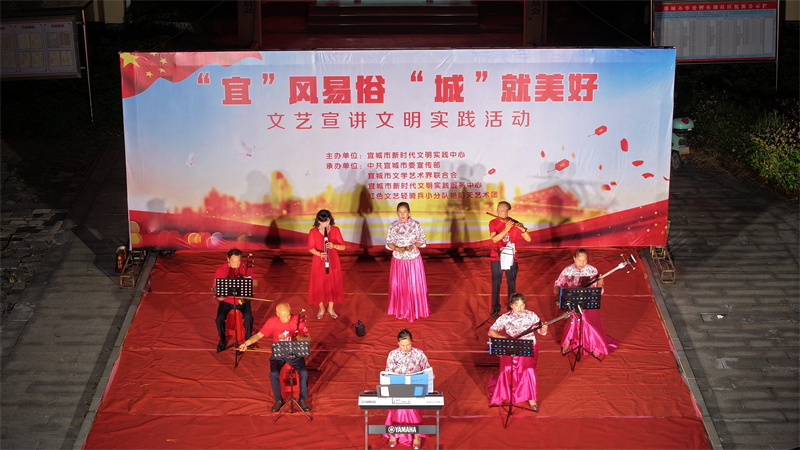 本网讯记者郑潘通讯员胡康华 黎傲雪报道:9月5日,“‘宜’风易俗 ‘城’就美好”文艺宣讲文明实践活动走进鄢城街道鲤鱼湖社区,引导广大群众破除陈规陋习,树立文明新风。