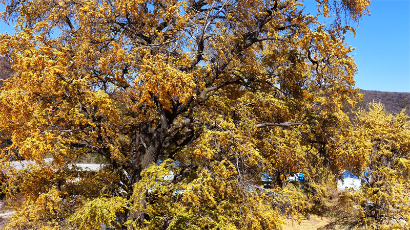 ½üÈÕ£¬¼ÇÕßÔÚÑîÁÖ´åËÉÁÖË¿´µ½£¬ËÄ¿ÃǧÄêÒøÐÓÊ÷´£Á¢É½¼ä£¬Ö¦Í·×ºÂú½ð»ÆµÄÉÈÐÎҶƬ¡£Î¢·çÇá·÷£¬Ò¶Æ¬óùóùÆ®Â䣬ÍðÈçÂþÌì½ðµû·ÉÎ裬ÔÚµØÃæÆÌ¾ÍÒ»²ãºñ´ïÊýÀåÃ׵ġ°½ðÉ«µØÌº¡±¡£