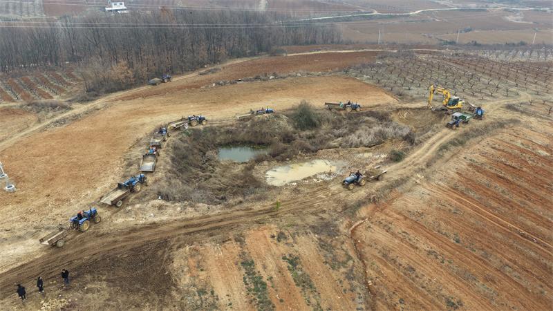 村民们纷纷将自家拖拉机开出来,组成运输队,将挖好的碎石运往各处田间道路上。头两天每天有50余辆拖拉机参与运输,后续几天更是增加到每天近百辆,极大提升修缮效率。