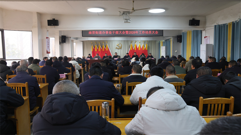 本网讯记者李勤 通讯员张仁华报道:2月28日,南营街道召开干部大会暨2026年工作动员大会,贯彻落实宜城市经济工作会议暨三级干部大会精神,总结2025年工作,通报2025年度先进集体和个人,部署2026年工作,动员全处上下统一思想、凝聚共识,奋力谱写南营街道高质量发展新篇章。